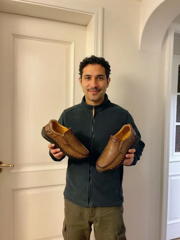 Tan Artisan - Ailongcity® Slip-On Leather Loafers: Hand-Stitched Elegance for Effortless Daily Style