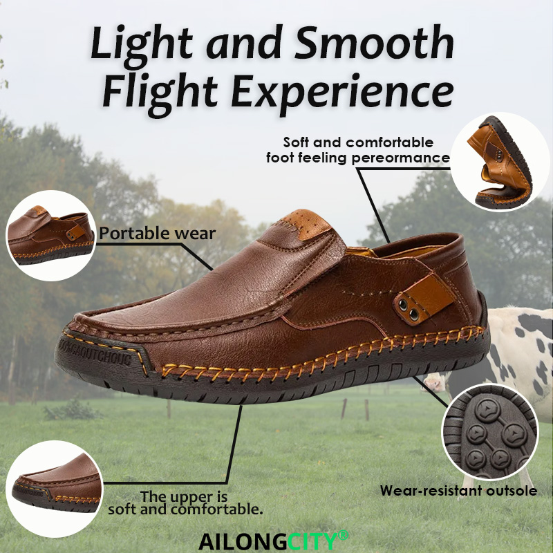 Brown Craft Loafer - Ailongcity® Timeless Leather Comfort for Effortless Daily Eleganc Men's Handmade Genuine Leather Slip-On Loafers by Ailongcity®