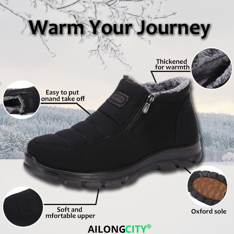 Black Fleece - Ailongcity® Lined Winter Ankle Boots Cozy Warmth with Convenient Zipper Design for Cold Days
