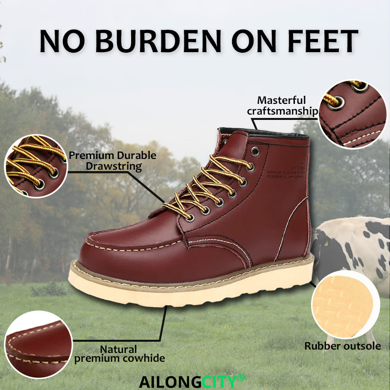 Burgundy Classic - Ailongcity® Lace-Up Work Boots: Timeless Toughness with Retro Flair