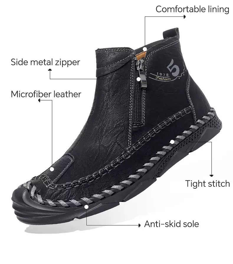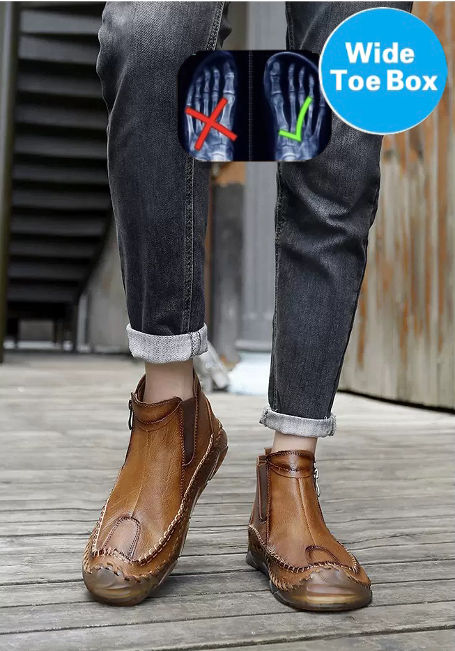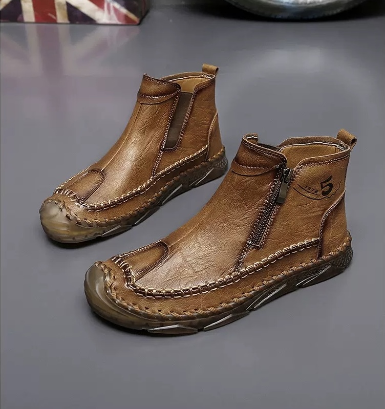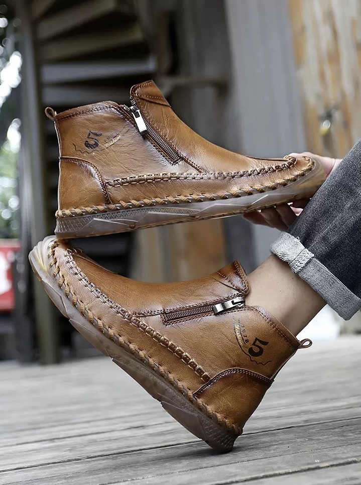 Tan Leather Hand-Stitched - Ailongcity® Zip-Up Ankle Boots: Artisan Craftsmanship with Timeless Style for Urban and Outdoor Explorations