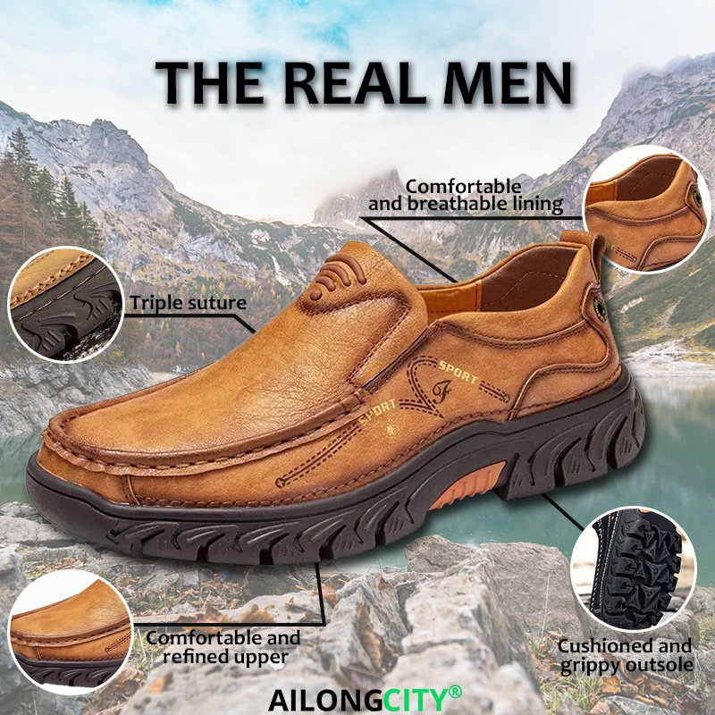 Tan Leather Sporty - Ailongcity® Slip-On Casual Shoes: Artisan Craftsmanship with Rugged Comfort for Active Lifestyles