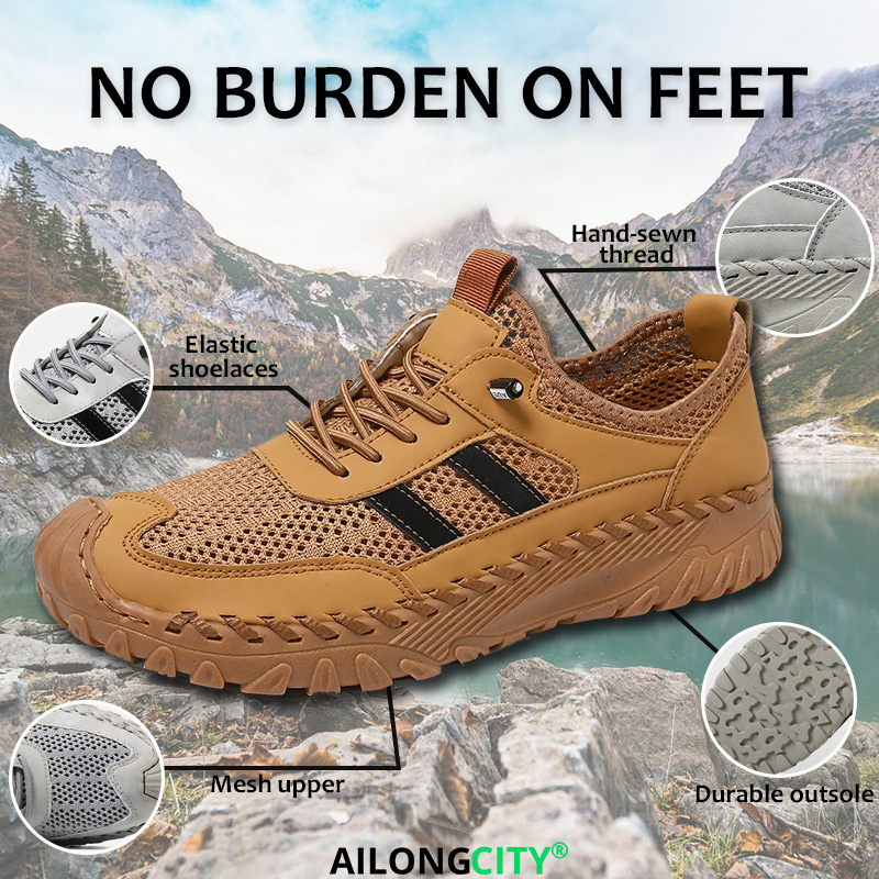 Tan Mesh Lace-Up - Ailongcity® Outdoor Hiking Sneakers: Max Ventilation with Rugged Grip for Summer Trail Adventures