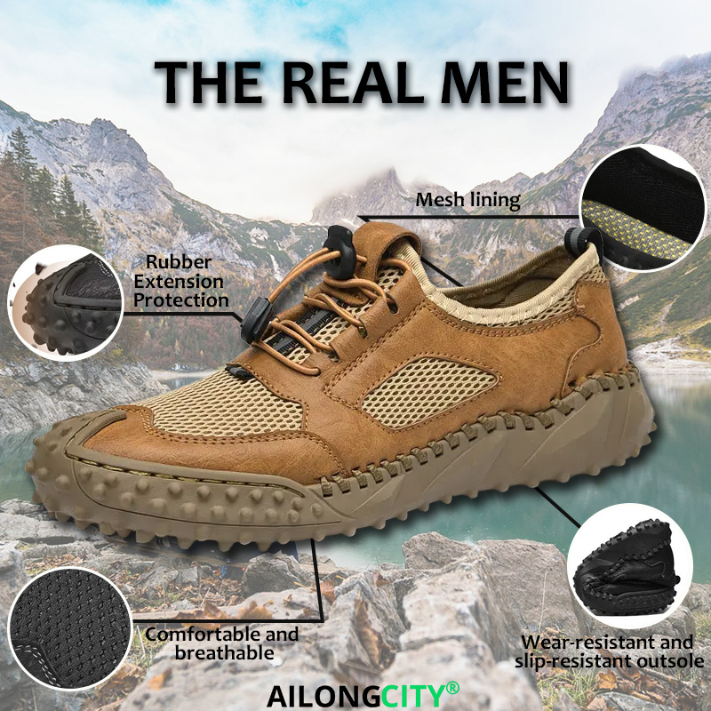 Tan Mesh-Trimmed - Ailongcity® Adjustable Outdoor Sneakers Breathable Durability with Rugged Traction for Trailblazers